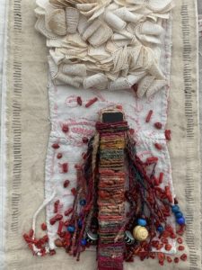 45 zeitgenössische Quilt- und Textilkunstwerke aus elf Nationen zeigen in dieser Schau, dass Kreativität, künstlerische Inspiration und zeitkritische Aussagen nicht allein der Malerei, Bildhauerei, Grafik und Fotokunst vorbehalten sind. Ausgewählt wurden die hochkarätigen Exponate von einer fünfköpfigen internationalen Jury aus über 130 Einsendungen. Das Foto zeigt einen Ausschnitt aus meinem Werk MEBE TAG TELI.